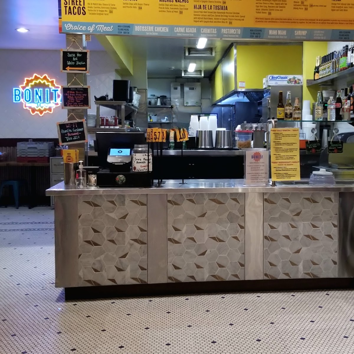 We recently tried Bonita Taqueria and ordered the NorCal burrito with rotisserie chicken along with a side of chips for takeout. The burrito pleasantly surprised me with its generous portion, packed with flavorful chicken, guac, and beans. Positives: The chicken was exceptionally tasty, making me consider getting a whole or half chicken for a quick dinner during busy workdays. The chicken was really well-spiced, juicy, and saucy. The burritos were sizable enough to share, especially when paired with chips and guac. Additionally, all three salsas provided were delicious, especially the tomatillo + habanero salsas mixed together. Negatives: Unfortunately, we found a nickel-sized bone in our burrito, and a large piece of gristle. Moreover, the potatoes lacked crunch, resulting in a somewhat mushy texture throughout the burrito, which likely wasn't intended. We'll opt for the regular burrito with rice next time. Despite these setbacks, I'm eager to return and sample other meats, perhaps in their tacos, and will definitely come back to grab a rotisserie chicken meal for dinner.